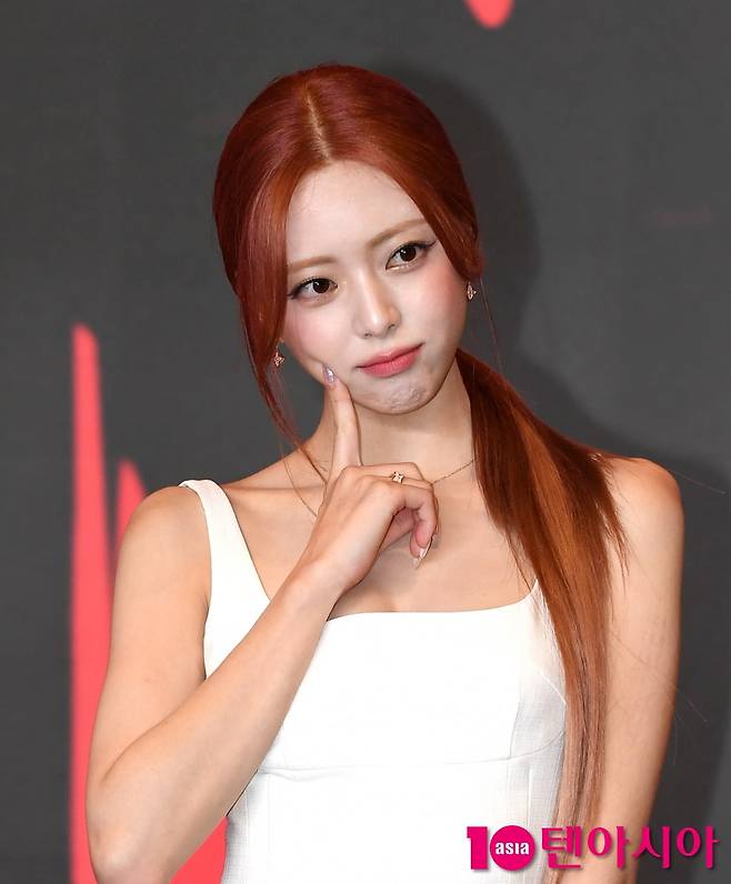 그룹 있지(ITZY, 예지, 리아, 류진, 채령, 유나) 유나가 9일 서울 송파구 소피텔 앰배서더 서울 호텔에서 열린 미니 앨범 'Girls Will Be Girls'(걸스 윌 비 걸스) 발매 기자간담회에 참석해 포즈를 취하고 있다.