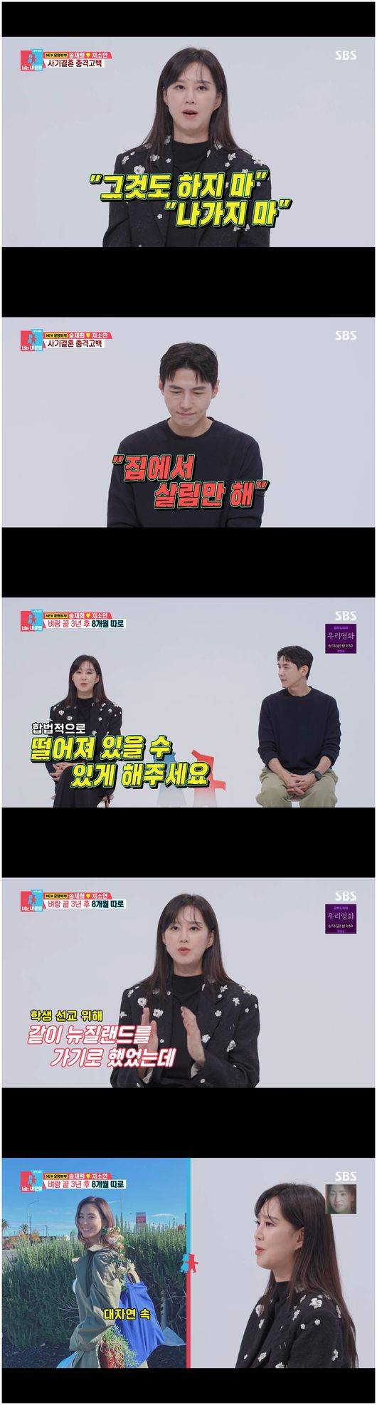 이들 부부에게 합법적 별거 기회가 찾아왔다. 지소연은 “같이 학생 선교를 위해 뉴질랜드를 가기로 했다. 송재희가 드라마 촬영을 하게 돼서 저 혼자 8개월 동안 뉴질랜드에서 머물렀다. 거기서 회복했다”라고 말했다.