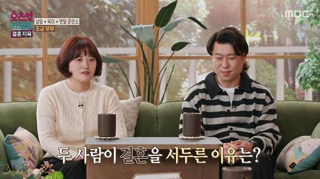 9일 방송된 MBC 예능 프로그램 '오은영 리포트-결혼 지옥'(이하 '결혼지옥')에는 매 순간 눈치를 보며 남편이 지시하는 대로 행동하는 아내와 소극적이고 효율적이지 못한 아내가 답답한 남편 '조교 부부'가 출연했다.