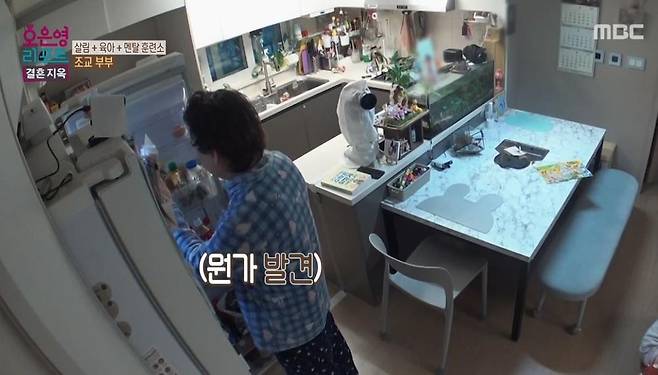아내는 알콜 중독이라고 봤지만 남편은 부인했다. 식사를 마친 후 남편은 냉장고 문을 열고 소스 통을 꼼꼼히 살펴봤다. 계속 냉장고 안을 보는 남편 때문에 아내는 결국 자리에서 일어났다. 아내는 남편이 냉장고 검사를 한 지 5년 이상 되었다고 말했다. 아내는 "유통기한 지난 게 눈에 띄면 바로 갈아 엎는다. 하루 지난 건데 애들 먹이려고 했냐, 이럴 때도 있다"라고 설명했다.