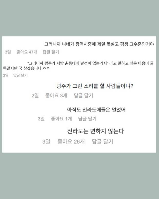 선거철에 더욱 극심해지는 호남 지역 비하 댓글들, 광주일보 SNS 댓글에서도 찾아볼 수 있었습니다.