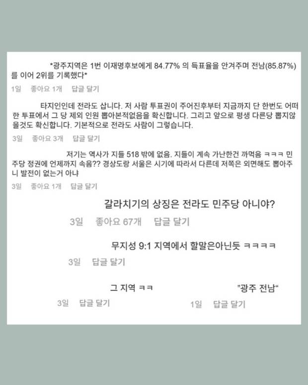 [광클] 21대 대통령선거와 호남 지역 비하