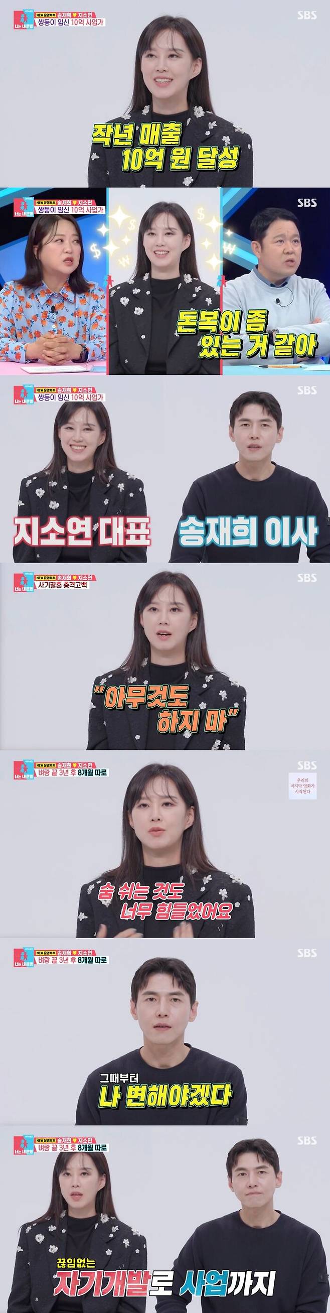 이날 방송에서는 지소연은 3년 차 광고 대행사 대표로의 일상을 공개해 눈길을 끌었다. 지소연은 "자본금 0원으로 시작해서 작년 매출 10억을 달성했다"라고 밝혀 모두를 놀라게 했다.