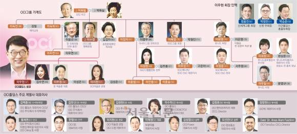 또 이화영 회장의 사위는 이명박 전 대통령 시절 총리를 지낸 한승수씨의 아들 한상준(53)씨다. 이 회장의 장녀인 이희현(46)씨가 한 전 총리의 장남 상준씨와 결혼하면서 사돈을 맺었다. 상준씨는 유니드비티플러스 대표로 재직 중이다. 이 혼사를 통해 OCI는 박근혜 전 대통령과도 연결된다. 한 전 총리의 부인이 박정희 전 대통령의 부인인 육영수 여사의 조카다. 한 전 총리가 박 전 대통령의 이종사촌 형부가 되는 셈이다.