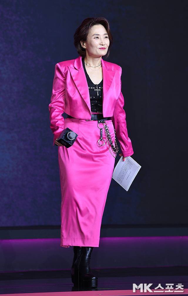 9일 오전 서울 드래곤시티에서 열린 넷플릭스 시리즈 '오징어 게임' 시즌3 제작발표회에 진행자로 참석한 박경림은 강렬한 핫핑크 슈트를 완벽하게 소화하며 눈길을 끌었다.