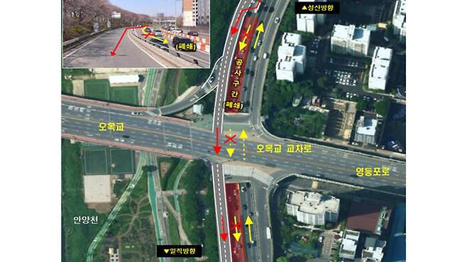 ▲ 오목교 하부도로 일직방향 폐쇄 개념도