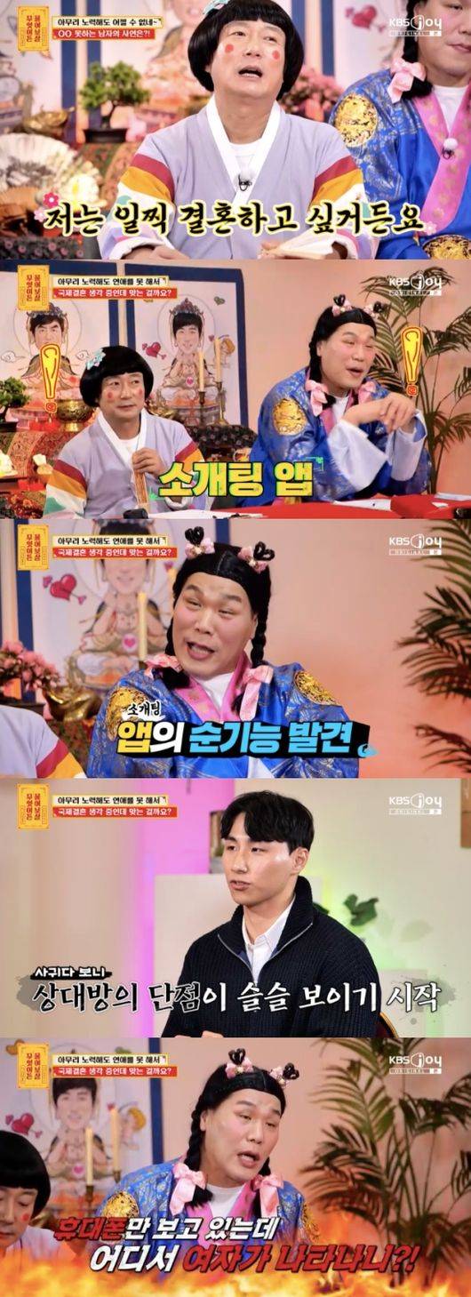또 서장훈은 “연애하고 싶으면 성격을 바꿔야 한다. 사람들 많은 곳에 가야 한다. 휴대폰만 보고 있는데 어디서 여자가 나타나냐. 문 열고 사연자 집에 들어오냐. 지금 29살인데 연애 경험도 없는 사람이 결혼을 급하게 생각하는 게 순서가 맞지 않다. 오로지 결혼 상대로만 보면 좋은 인연을 놓칠 수 있다. 당장 결혼해야 한다는 이 생각은 하지 마라. 그 생각을 하다 보면 잘못된 선택을 할 수 있다"라고 조언했다.