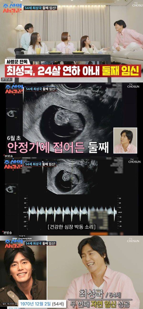 9일 방송된 TV조선 예능프로그램 '조선의 사랑꾼'에서는 배우 최성국이 둘째 임신을 발표했다.
