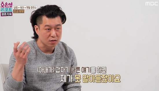 남편은 "(아내가) 집안일하는 거 보면 답답하다. 일이 크게 줄어있지 않는다. 심지어 냄비가 꿇어 넘쳐도 (아내의) 눈에 들어오지 않는다"라고 말했다. 또 그는 "이 정도면 '성인 ADHD아니냐' 했다"라며 아내에게 막말을 서슴지 않았다.