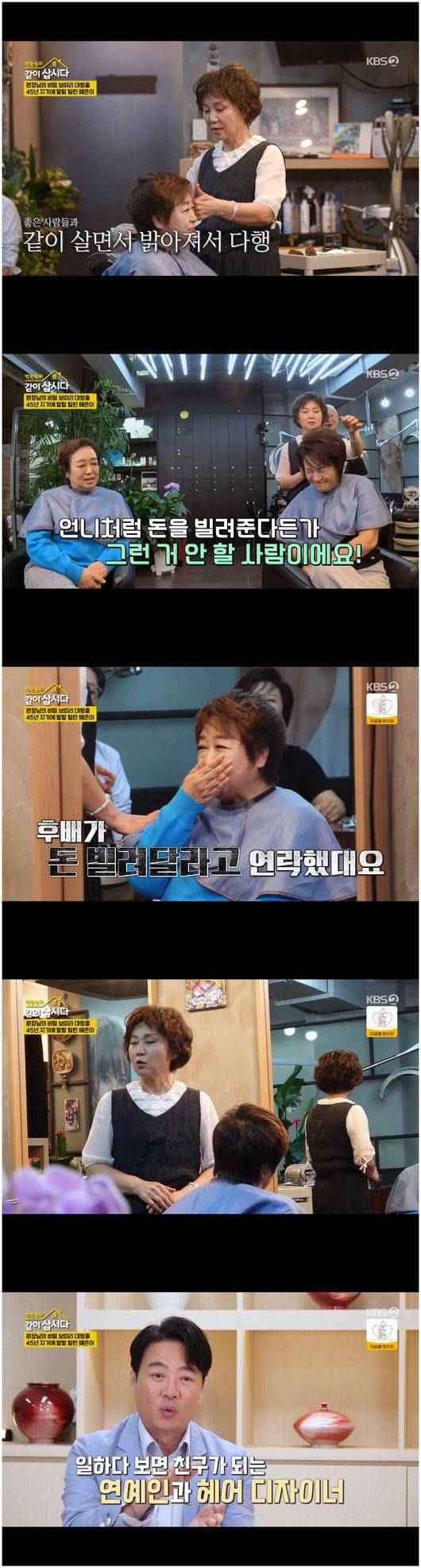 9일 방영한 KBS2TV '박원숙의 같이 삽시다'에서는 혜은이의 45년 단골 미용실 방문, 여주 도자기 축제 무대 등장, 그리고 윤다훈 부모와의 만남이 그려졌다.
