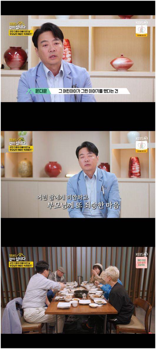 윤다훈은 “그 어린아이가 그런 생각을 했다는 게 놀랐다. 그리고 부모님은 얼마나 슬프셨을까. 또 미안하고, 또 미안했다”라고 말했다.