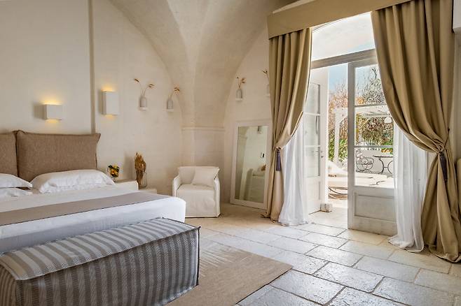 발리오니 마세리아 무차는 2023년, 오트란토에 새롭게 둥지를 튼 럭셔리 리조트다. 17세기 농가 건물을 개조하여 호텔로 탈바꿈시켰다. 총 40개의 객실은 전통적인 석조 건축 양식으로 구성되어 있다. 일부 스위트룸은 벽난로, 개인 자쿠지를 갖추고 있다. 호텔에서 오트란토 시내까지는 차로 10분. 고대 성채와 로마네스크 성당, 아기자기한 골목이 근방에 있다. 호텔 근처 해변인 바이아 데이 투르키 해변(Baia dei Turchi)은 푸른 바다와 백사장이 어우러진 숨겨진 명소다. 호텔 셔틀버스로 편하게 왕복할 수 있다. 인근의 알리미니 호수와 자연 보호구역 산책은 선택이 아닌 필수.