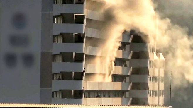 새빨간 불길이 타오르고 창문 밖으로 까만 연기가 쉴 새 없이 뿜어져 나옵니다.