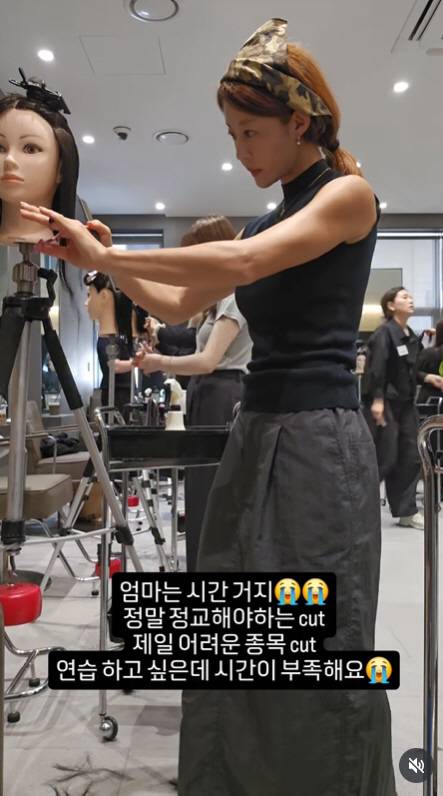 이지현은 9일 자신의 계정에 "엄마는 시간거지에요. 갈수록 미용은 더 재밌어지는데. 다른 친구들은 아침 일찍 와서 연습하고 수업 끝나고도 연습하는데"라며 영상을 게재했다.