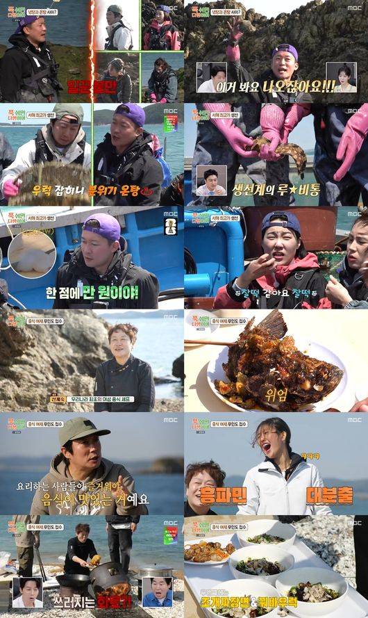 이어 이들은 대한민국 대표 횟감인 우럭 조업에 나섰다. 초반 통발이 잠잠하자, ‘국민 일꾼’ 이수근이 전면에 나섰다. 이수근이 일을 시작하자마자 우럭, 노래미, 소라 등 수확물이 연달아 올라왔다. 무엇보다 선장님이 “하루에 한 마리도 보기 힘들다”고 말한 서해안 최고가 생선, 전복치가 두 마리나 포획돼 현장을 축제 분위기로 물들였다.