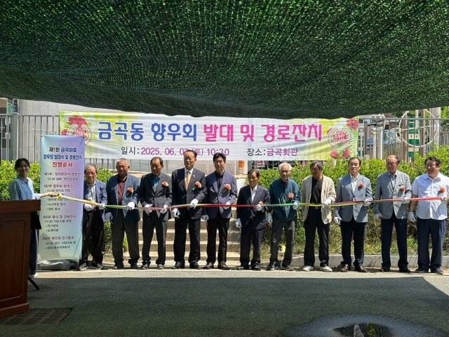 이날 행사는 금곡마을 향우회(회장 한희석)가 주관하고 금곡마을 노인회(회장 박윤석)가 주최했으며 마을이 크게 융성하고 흥하기를 기원하는 정자 ‘금향정’ 현판식을 시작으로 향우회 발대식, 경로잔치 순으로 진행됐다.