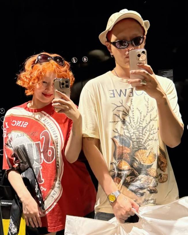 또한, 현아의 옆에 있는 용준형 역시 오렌지 계열 헤어 컬러로 현아와 커플 스타일을 완성했다. 두 사람의 손을 꼭 잡은 포즈에서 신혼 부부의 달달함이 느껴지며, 두 사람은 패션과 감성이 공존하는 '힙한 커플'의 면모를 자랑했다.