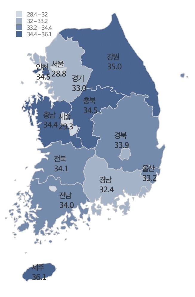 | ▲ [지역사회건강조사] 시·도 지역별 비만율 현황(표준화율) |