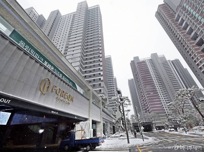 규제가 적용되는 첫 타자는 올림픽파크포레온이 될 전망이다. 무순위 청약 예상 물량은 전용면적 39·49·59·84㎡ 4가구다. 2023년 '둔촌주공 살리기'라는 비판을 받으며 무순위 청약 제도를 완화했는데 2년 만에 상황이 역전됐다.