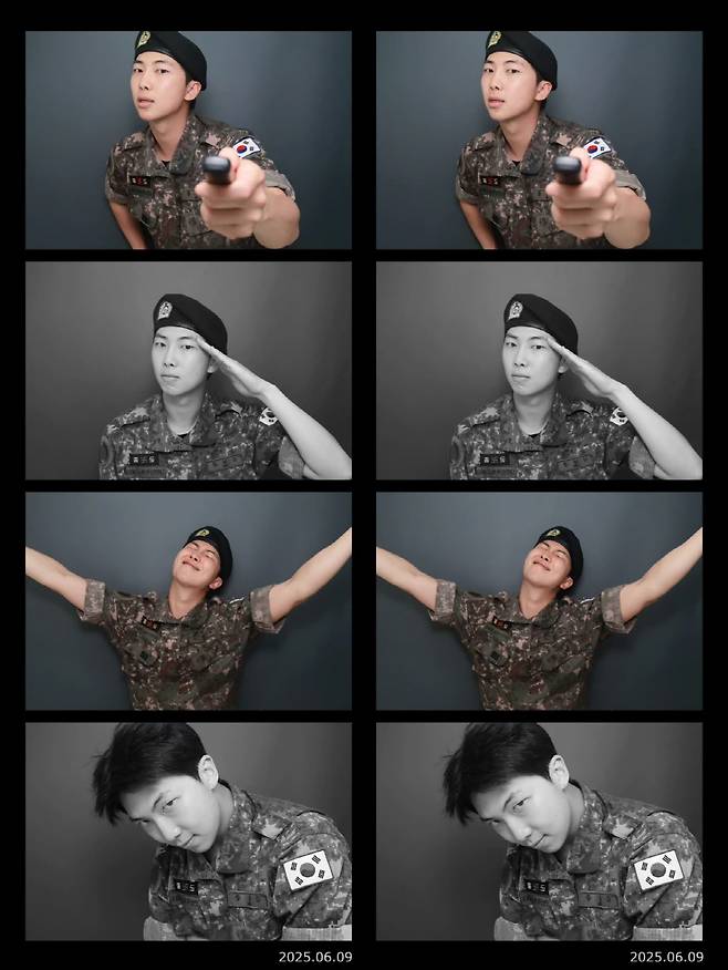 사진 속 RM은 군복을 입은 다양한 포즈의 사진을 공개하며 팬들과 기쁨을 나눴다.