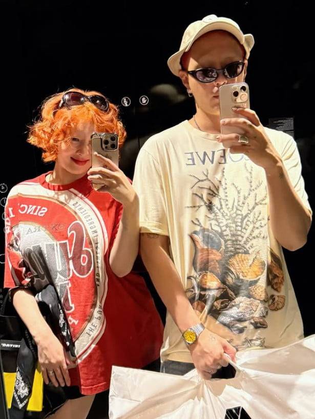 또한 두 사람은 눈 밑 광대 부위의 '커플 피어싱'을 비롯해 커플링, 커플 선글라스까지 착용하며 톡톡 튀는 케미스트리를 자랑했다.