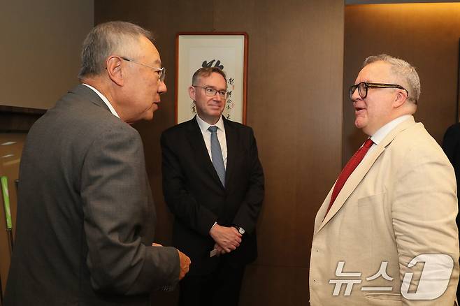 (서울=뉴스1) = 한국경제인협회는 류진 한국경제인협회 회장이 10일 서울 서대문구 충정로 풍산빌딩을 방문한 영국 무역특사 왓슨경을 만나 주요 현안과 양국 경제협력 방안에 대해 논의했다고 밝혔다. (한국경제인협회 제공. 재판매 및 DB 금지) 2025.6.10/ 뉴스1