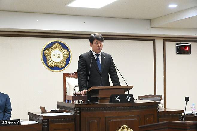 오은규 의장은 개회사에서 "선거 준비와 원활한 진행을 위하여 묵묵히 애써주신 모든 선거 종사자 및 공무원들의 노고에 감사하다"며 "무더위와 장마철의 위기가 도래하고 있는 지금 폭염과 집중호우 등 하절기에 발생하는 각종 재난에 대비하여 구민의 안전과 피해 예방에 만전을 기해주길"당부했다.