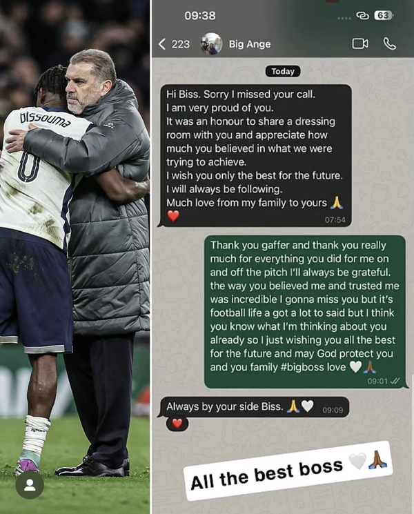 특히 포스테코글루 감독의 신임을 듬뿍 받았던 비수마는 ‘스승’의 경질에 큰 충격을 받은 듯 했다. 영국 ‘ESPN’은 10일 포스테코글루 감독과 비수마가 문자로 나눈 대화 내용을 공개했다. 비수마는 경질 소식을 접한 이후, 포스테코글루 감독에게 전화를 걸었다. 그러나 포스테코글루 감독은 그의 전화를 받지 못했다.
