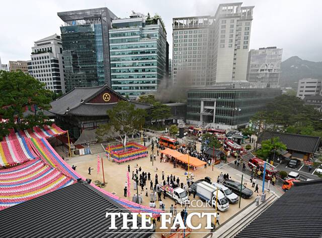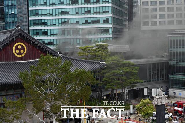 [더팩트ㅣ서예원 기자] 10일 오전 10시 22분께 서울 종로구 수송동 조계사 옆 한국불교역사문화기념관에서 불이 났다.
