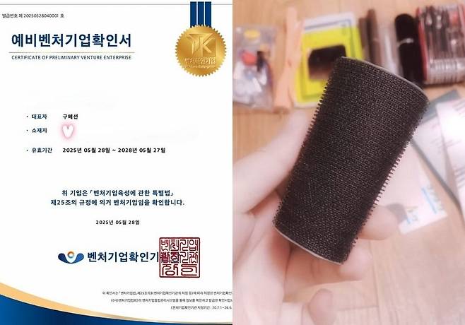 사진에는 벤처기업확인기관장이 수여한 구혜선의 ‘예비벤처기업확인서’가 담겼다.
