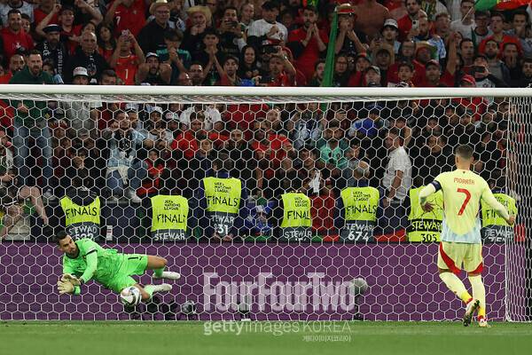 ‘주장’ 모라타의 승부차기 실축이 아쉬웠다. 후반 교체 투입된 모라타는 스페인의 네 번째 키커로 나섰다. 그러나 모라타의 슈팅이 상대 골키퍼에게 읽혔다. 결국 마지막 키커로 나선 후벵 네베스가 득점에 성공했다. 이후 모라타는 표정에서 좌절감을 감추지 못했다.