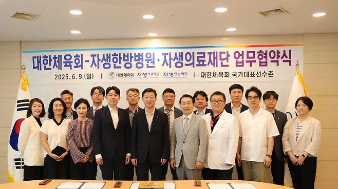 대한체육회가 자생한방병원·자생의료재단과 체육회 소속 국가대표 선수·지도자, 임직원들의 신속한 의료 서비스·치료 지원을 위한 업무 협약을 체결했습니다.
