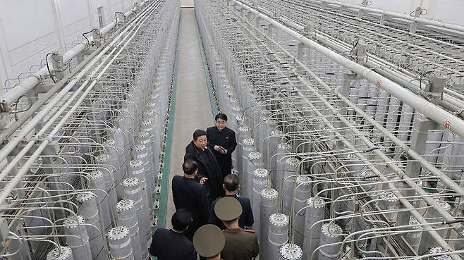 ▲ 지난 1월 29일 김정은이 핵물질 생산기지·연구소에서 현지지도하는 현장