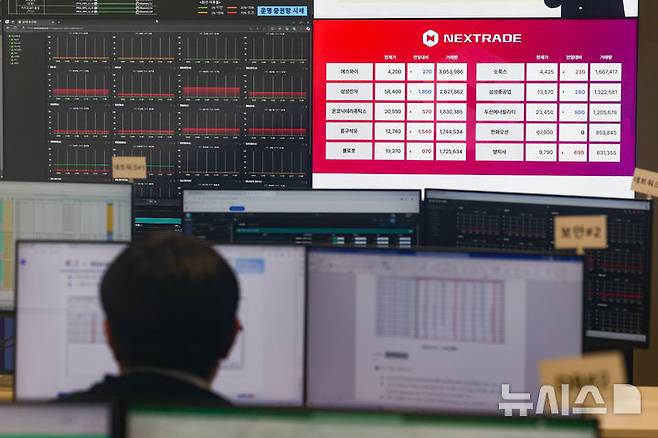 [서울=뉴시스]우연수 이지민 수습 기자 = 출범 3개월 만에 급성장한 넥스트레이드가 거래량 한도 규정을 맞추기 위해 일부 종목의 거래 제한을 고려하고 있다. 넥스트레이드의 시장 점유율은 날로 높아지고 있는데 자본시장법상 대체거래소의 거래량은 한국거래소의 15%, 종목별 30% 이하로 제한되기 때문이다.