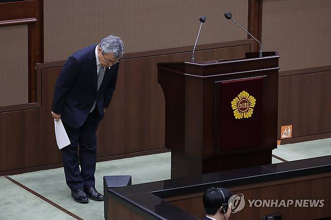 (서울=연합뉴스) 김성민 기자 = 정근식 서울시교육감이 10일 서울 중구 서울시의회에서 열린 제331회 정례회에서 인사하고 있다. 2025.6.10
