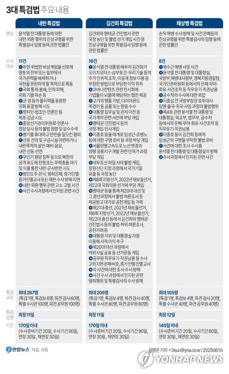 [그래픽] 3대 특검법 주요 내용