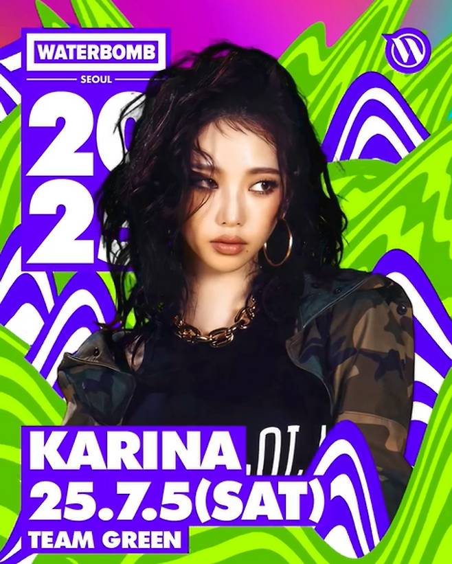 10일 워터밤 측은 내달 4일부터 6일까지 일산 킨텍스 야외 글로벌 스테이지에서 열리는 여름 대표 뮤직 페스티벌 'WATERBOMB SEOUL 2025'의 최종 라인업을 공개했다. 카리나는 팀 그린 소속으로 내달 5일 토요일 무대에 단독으로 오른다.
