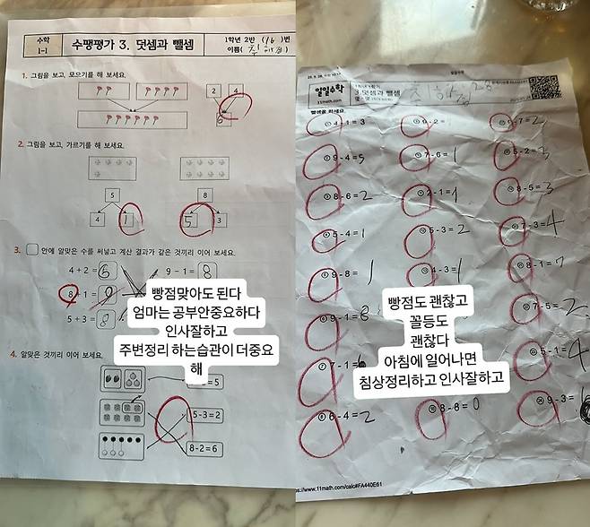 함소원은 시험지와 함께 "빵점 맞아도 된다. 엄마는 공부 안 중요하다. 인사 잘하고 주변 정리하는 습관이 더 중요해"라며 진심을 전했다.