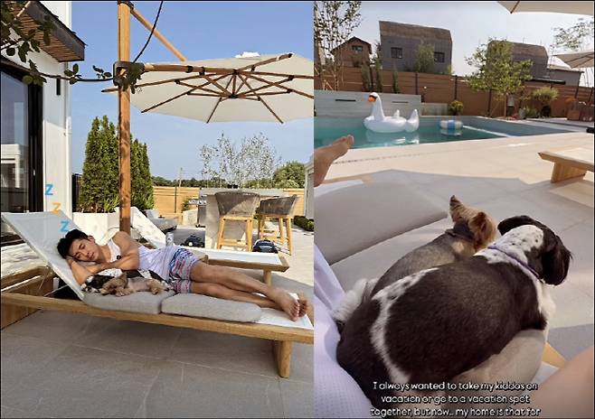 공개된 영상 속에는 반려견들과 함께 단독주택 수영장에서 쉬고 있는 브라이언의 모습이 담겼다. 브라이언은 선베드에 누워 반려견들과 낮잠을 자며 여유로운 일상을 보내는 모습. 최근 완공된 브라이언의 300평 단독주택은 웬만한 리조트보다 고급스러워 보인다.