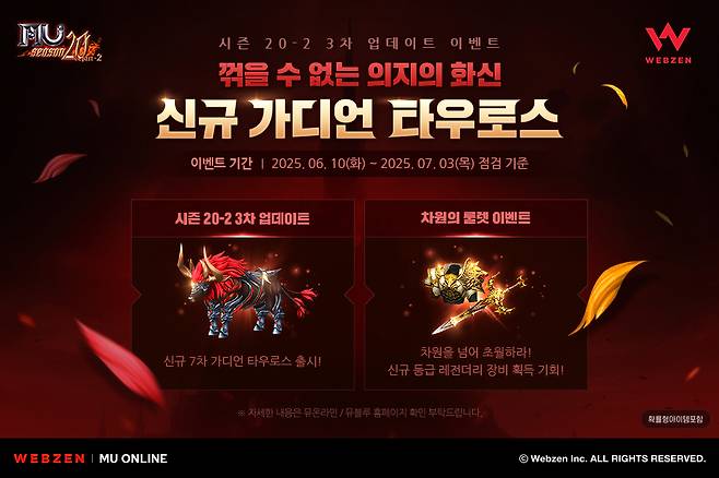 웹젠은 PC MMORPG '뮤 온라인'에 신규 가디언 업데이트와 함께 기념 이벤트를 진행한다.