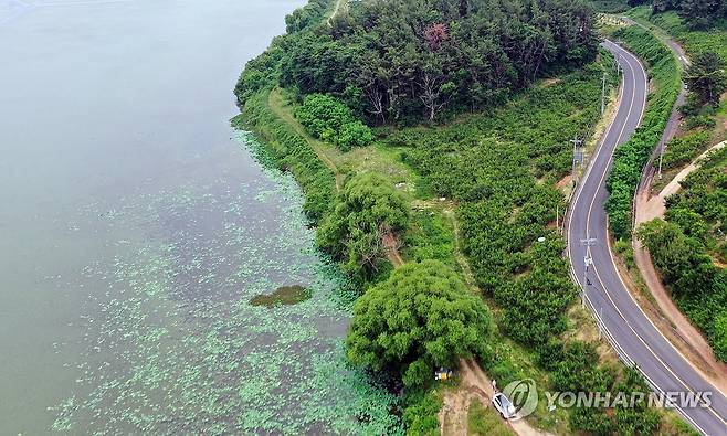 (창원=연합뉴스) 김동민 기자 = 10일 오후 경남 창원시 의창구 동읍 산남저수지 일대에서 녹조가 관찰되고 있다. 2025.6.10