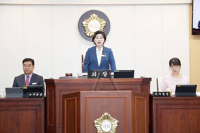 10일 개회사에서 전재옥 의장은 호국보훈의 달을 맞아 "대한민국이란 국호 아래 우리가 누리고 있는 자유와 평화, 그리고 민주주의의 가치를 다시금 되새기며 순국선열과 호국영령의 영원한 안식을 기원드린다"는 추모의 말로 말문을 연 뒤 5개 부서장에 대한 수시인사에 대해 직격했다.