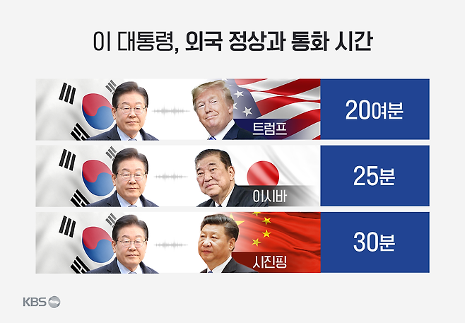 이재명 대통령이 취임 이후 한반도 정세에 가장 큰 영향을 끼치는 3개 나라 정상과의 통화를 완료했습니다. 지난 6일 미국 트럼프 대통령과 통화했고, 어제(9일) 일본 이시바 총리와, 오늘(10일) 시진핑 중국 국가주석과 통화를 마쳤습니다.