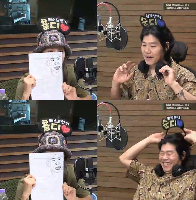 이날 남편의 라디오 방송에 게스트로 출연한 이효리는 '월간 이효리' 코너가 진행되기 전, 멘트를 하는 이상순의 앞에서 대기하며 그린 그림을 공개했다.