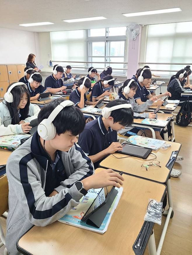 ▲AI와 함께 학생 한 명, 한 명의 배움에 집중=신탄중앙중은 2025학년도 '디지털 기반 학생 맞춤형 교육 선도학교'로서 AI 디지털교과서와 에듀테크 도구를 도입해 학생 개개인의 학습 수준과 스타일에 맞는 맞춤형 교육을 실현하고 있다. 이는 2022 개정 교육과정의 핵심 가치인 자기 주도적 학습 역량 강화와 디지털 리터러시 함양을 실현하기 위한 구체적 실천이다.
