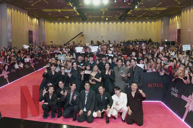 특히, 이날 현장을 찾은 수많은 팬들은 초록색 트레이닝복부터 핑크가드 코스튬 등 '오징어 게임'을 상징하는 의상을 직접 입고 참석해 작품을 향한 애정을 아낌없이 드러내기도 했다.