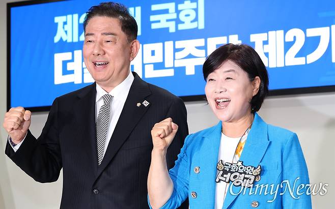 | ▲ 민주당 원내대표 후보로 나선 김병기·서영교 제22대 국회 더불어민주당 제2기 원내대표 후보로 나선 김병기(왼쪽)·서영교 의원이 10일 서울 여의도 국회 의원회관에서 열린 합동토론회에 앞서 자세를 취하고 있다. |