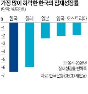 한은의 경고 "韓 잠재성장률 30년간 6%P 하락…日의 3배"