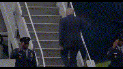 도널드 트럼프 미국 대통령이 비행기에 오르던 중 계단에서 휘청이며 넘어질 뻔한 영상이 화제가 되고 있다.