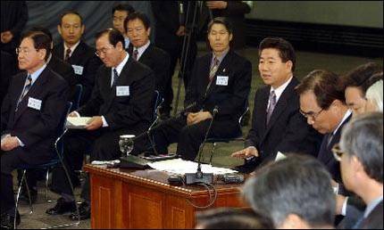 | ▲ 2003년 1월 27일 오전 첫 전국순회토론회 장소인 대구를 방문한 노무현 당선인이 대구컨벤션센터에서 열린 "대구.경북민에게 듣는다" 토론회에서 인사말을 하고 있다. |
